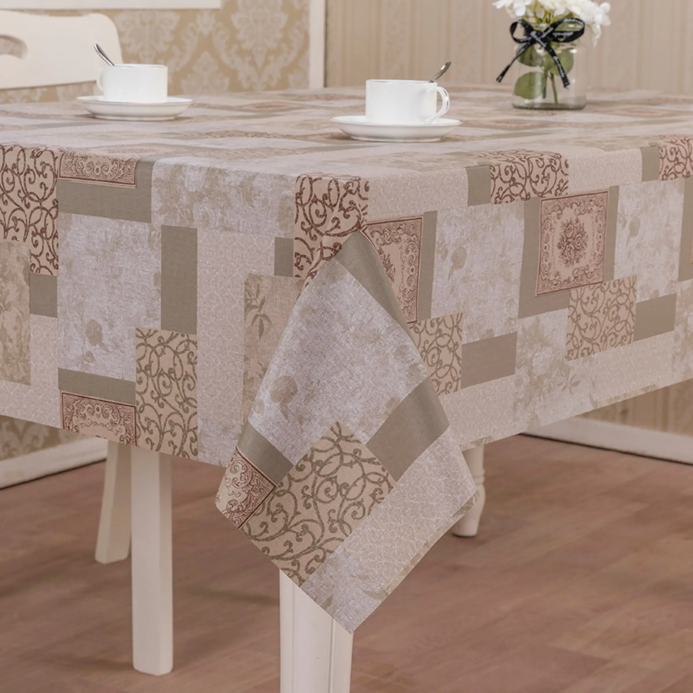 Cerata Stołowa Glitter na Tkaninie Poliestrowej – Klasyczna Kratka – Beżowa